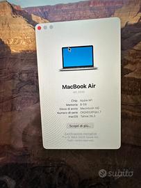 Vendo MacBook Air 13" M1 argento in perfette condizioni , acquistato nel 2022. Nessun graffio, display perfetto, nessun pixel guasto. Specifiche: Processore Apple M1 dotato di 8 core CPU,8 core GPU e 16 core Neural Engine 8 GB RAM Display 13,3" nitidissimo Tastiera qwerty Batteria in eccellenti condizioni, 87% Scatola e caricabatteria originale Consegna a mano su Roma