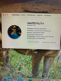 Vendo MacBook Air 13' del 2014 tenuto con estrema cura completo ancora di tutte le pellicole; tutti i dettagli tecnici nelle foto. Al posto del vecchio alimentatore fornisco un più pratico cavo magsafe2/USB-C. Unico piccolo difetto nella plastica della cerniera come visibile in foto.