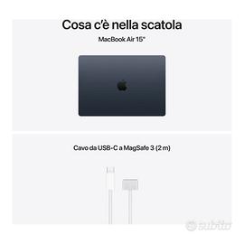Apple MacBook Air 15" M5 16GB 512GB Mezzanotte nuovo sigillato con scontrino MediaWorld Vendo Apple MacBook Air 15" originale, modello MDVH4T/A, colore Mezzanotte. Prodotto nuovo e mai aperto: la scatola è ancora sigillata, i sigilli originali sono perfettamente integri e il MacBook non è mai stato acceso né utilizzato. Acquistato da MediaWorld Bologna, 11/04/2027 con scontrino fornibile insieme al prodotto per la garanzia. Caratteristiche principali: display Liquid Retina da 15,3" chip Apple M5 CPU 10-core e GPU 10-core 16GB di memoria unificata SSD da 512GB Touch ID videocamera Center Stage 12MP MagSafe 3 + 2 porte Thunderbolt 4 (USB-C) Perfetto per chi cerca un prodotto realmente nuovo, originale, mai aperto e con confezione ancora intatta.