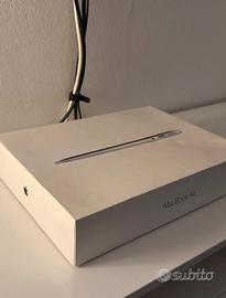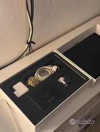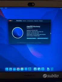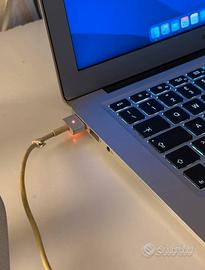 Completo di: - Scatola originale Apple (un pó rovinata) - Caricatore originale Apple (il filo del caricabatterie è visibilmente diventato giallo, ma funziona correttamente comunque. - Stand Amazon Basic per tenere sollevato il portatile Difetti: - Ingresso USB sinistro non funzionante (ha smesso di funzionare casualmente senza nessun motivo specifico) - Piccolissima ammaccatura estetica vicino la tastiera (quasi impercettibile) CARATTERISTICHE TECNICHE: Schermo retroilluminato LED panoramico lucido da 13,3" (diagonale), 1440 x 900 pixel Processore: Intel Core i5 dual-core a 1,8 GHz con 3 MB di cache L3 (Turbo Boost fino a 2,9 GHZ) RAM: 8 GB di SDRAM LPDDR3 a 1600 MHz SSD: Unità SSD PCle da 128 GB CPU: Intel HD Graphics 6000 Slot scheda SDXC, porta Thunderbolt 2,due porte USB 3 Ingresso cuffie: altoparlanti stereo Tastiera retroilluminata e sensore di luminosità ambientale Wi-Fi 802.11 ac e Bluetooth 4.0 Videocamera HD FaceTime