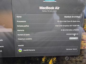 Vendo Macbook Air 128gb, perfettamente funzionante, ottimo computer utilizzabile per tutte le applicazioni, aggiornato. Schermo Retina ultra definito, tastiera fantastica, perfetto per lo studio e per film / multimedia.