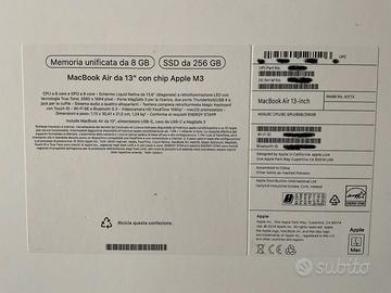 Apple MacBook Air M3 (2024) 256GB Ssd 8GB Ram 8Cpu 8Gpu Display 13.6" Midnight. Nuovo, meno di 15 cicli di batteria effettuati, perfetto, senza alcun segno. Fornito con apposita custodia imbottita.