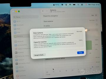 Vendo per passaggio a modello successivo Apple Macbook Air M4 13,6’’ pari al nuovo, color mezzanotte, ssd da 256GB e 16GB RAM. Nessun graffio o segno di usura. Comprato ad aprile 2025. Stato della batteria al 100%, come visibile in foto. Vendo con scatola originale e caricatore originale. Preferisco consegna a mano.