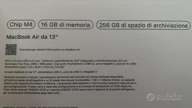 Include MacBook Air da 13", alimentatore USB-C, cavo da USB-C a MagSafe 3