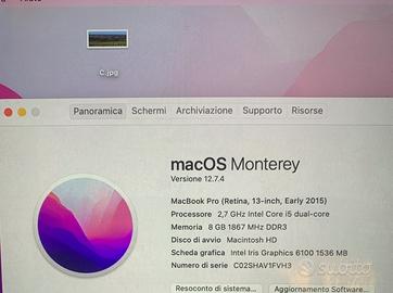 Vendo Mackbook Pro 13 del 2015 tasiera/trackpad NON FUNZIONANTI - Funziona con USB (mouse - tastiera esterna chw posso vendere insieme al computer). Schermo come da foto. Su monitor è funzionante quindi la scheda Logica (motherboard) e l'SSD (Macintosh 121 GB) sono INTEGRI E FUNZIONANTI. Sono uscito correttamente da i vari account e il Macbook è stato inizializzato e reinstallato macOS Monterey.