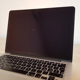 Apple MacBook Pro 13" Mid 2014 – 512GB SSD | 8GB RAM Vendo USATO, buone condizioni generali. Display con difetto al trattamento antiriflesso (riconosciuto da Apple, non visibile a schermo acceso). ⚠️ BATTERIA DA SOSTITUIRE: funziona solo collegato all'alimentatore, incluso nella vendita. Completo di confezione originale ed accessori (alimentatore e prolunga originale Apple). ** Specifiche tecniche ** • MacBook Pro (Retina, 13-inch, Mid 2014) • Intel Core i5 2,8 GHz dual-core • 512 GB SDD • 8 GB 1600 MHz DDR3 • Intel Iris 1536 MB Contattami per eventuali ulteriori informazioni o chiarimenti.