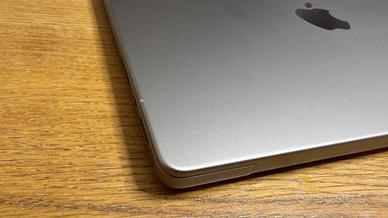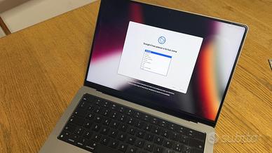 Apple MacBook Pro 14‑inch (2021) •Chip: Apple M1 Pro •RAM: 16 GB •SSD: 512 GB •Condizioni estetiche: quasi perfette •Batteria: capacità massima 80 % (stato “normale” secondo macOS) - Perfetto in ogni parte, usato sempre con custodia e copri-tastiera. Piccolissimo segno sul bordo puramente estetico come da foto. - Caricatore e scatola originale