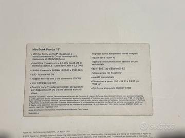 • Display: display Retina da 15,4 pollici con tecnologia IPS e risoluzione 2880x1800.