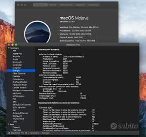 Vendo Apple MacBook Pro 15 pollici colore Alluminio con queste caratteristiche: