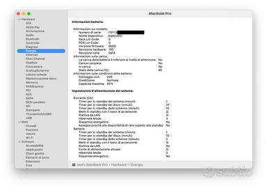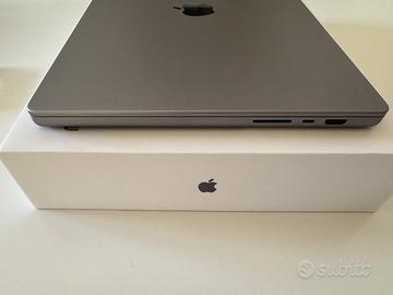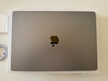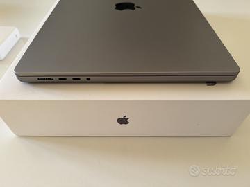 Chip: Apple M1 Pro — CPU 10 core (8 performance + 2 efficiency), GPU 16 core, Neural Engine 16 core Memoria unificata: 16 GB (200 GB/s di bandwidth) Storage: 512 GB SSD NVMe (configurabile) Display: 16,2" Liquid Retina XDR — 3456×2234 px a 254 ppi — ProMotion 120Hz — True Tone — 1 miliardo di colori — 1600 nit peak Fotocamera: FaceTime HD 1080p Audio: Sistema a 6 altoparlanti con woofer force-cancelling, array microfoni studio Connettività: Wi-Fi 6 (802.11ax) — Bluetooth 5.0 Porte: MagSafe 3 · 3× Thunderbolt 4/USB4 (40 Gb/s) · HDMI · slot SDXC · jack 3,5 mm Batteria: 100 Wh — fino a 21 ore di riproduzione video Peso: 2,1 kg — Dimensioni: 35,57 × 24,81 × 1,68 cm Sistema operativo: macOS (aggiornabile fino all'ultima versione disponibile) Condizioni: Ottime Alimentatore: incluso Cavo alimentazione: incluso Scatola originale: inclusa Cicli batteria: vedi foto