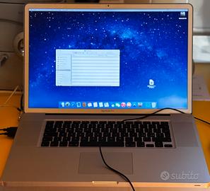 Macbook Pro 17 del 2009. Cavo di alimentazione rovinato. Funziona con tastiera e mouse esterni.