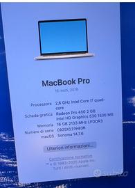 Vendo MacBook Pro anno 2016 da 15 pollici. Come vedete in foto lo schermo é danneggiato e quindi va riparato. Anche la batteria é da cambiare, ecco perchè il prezzo così basso. Come sistema operativo é stato scaricato Sonoma attraverso Opencore per rendere il computer piú fluido e performante. Vendo completo di cavo e alimentatore.