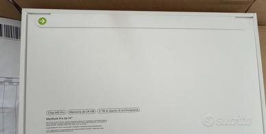Vendo MacBook Pro con processore M5 Pro con 24 GB di memoria unificata e 2 TB di spazio di archiviazione colore nero siderale in confezione ancora sigillata, come si evince da foto, che sarà aperta dal futuro proprietario ed in mia presenza per verificarne il contenuto. Prezzo del prodotto €3099 come da ricevuta di acquisto datata 22/04/2026