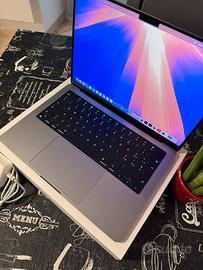 Apple 2021 Macbook Pro 14” pollici Chip Apple M1 Pro con CPU 8-core e GPU 14‑core Condizioni PERFETTE, pari al nuovo - no graffi, botte o problemi 16 GB di RAM 512 GB SSD Colore Grigio Siderale Aggiornato ad MacOs Tahoe 26.4.1 Condizioni batteria attuale 94% Vendo con scatola e alimentatore Apple originali Vendo solo con consegna a mano su Roma (comune) - non spedisco
