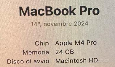 MacBook modello 2024 con chip M4 pro