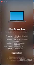 Apple MacBook Pro Retina 13" / TOUCHBAR / Intel Core i5 2.0 GHz / RAM 16 GB / 512 GB ssd / Tastiera qwerty Dutch.