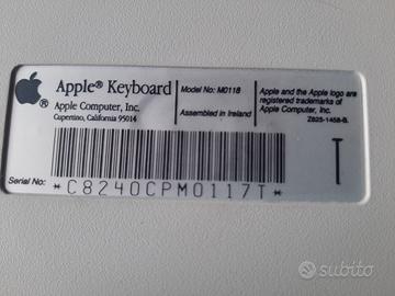 APPLE modello MACINTOSCH SE completo di tastiera. Manca il cavo di collegamento alla tastiera. Il pc si accende, sente il floppy che funziona sia in entrata che in uscita. il case è in ottimo stato, semplicemente da pulire. Chiaramente oggetto storico da amatore.