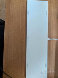 Vendo tastiera wireless originale Apple estesa. Il modello è dotato di tastierino numerico e layout italiano (QWERTY). Scocca in alluminio, profilo ultra-sottile e batteria integrata ricaricabile. Condizioni estetiche eccellenti sia fronte che retro. Perfetta per completare postazioni Mac, specialmente per chi lavora con numeri e fogli di calcolo.