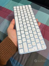 Bellissima tastiera Apple color azzurro chiaro argenteo in formato compatto, con touch id.