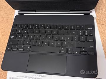 Vendo Apple Magic Keyboard originale per iPad Pro 11 pollici e iPad Air, colore Nero (Black). La tastiera è stata acquistata negli Stati Uniti ed è in condizioni estetiche e funzionali perfette, pari al nuovo. Caratteristiche principali: * Layout Americano (USA): Ideale per chi preferisce la disposizione dei tasti ANSI, ottima per la programmazione o per chi è abituato a scrivere in inglese. (Si può comunque usare in italiano impostando la lingua sull'iPad). * Trackpad integrato: Supporta perfettamente i gesti Multi-Touch di iPadOS. * Porta USB-C integrata: Per la ricarica pass-through, lasciando libera la porta dell'iPad per altri accessori. * Tasti retroilluminati: Con meccanismo a forbice per una digitazione precisa e silenziosa. * Design sospeso: Aggancio magnetico che permette di regolare l'inclinazione dell'iPad per una visione perfetta. Compatibilità (come da confezione): * iPad Pro 11 pollici (1ª, 2ª, 3ª e 4ª generazione) * iPad Air (4ª e 5ª generazione) Condizioni del prodotto: La tastiera non presenta segni di usura, tasti lucidi o graffi sul rivestimento esterno. È stata usata pochissimo e sempre con la massima cura. Inclusa confezione originale integra e manualistica. ✅ 100% originale 📦 Spedizione imballo accurato ❌ No perditempo