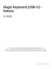 Vendo Apple Magic Keyboard bianca corta (senza id touch) e Magic Mouse 2, acquistati a luglio presso Apple Store (provvisti di fattura), completi di scatole originali e cavi di ricarica mai utilizzati. Prezzo non trattabile.