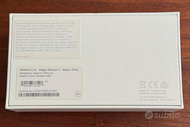 Apple Magic Mouse 2 Space Gray in condizioni perfette. Funziona tutto correttamente, nessun difetto. Batteria in ottimo stato. Esteticamente come nuova.