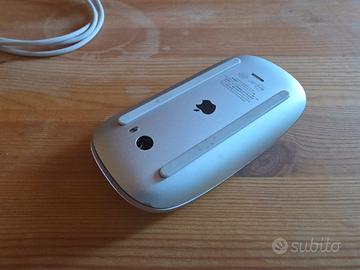 Apple Magic Mouse (A1657) di colore bianco. Cavo originale in corda. Presenta leggero graffio sulla parte superiore che non incide sull'uso, e piccolo segno sulla struttura in alluminio (in foto). Possibilità di spedizione.