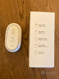 Apple Mighty Mouse Wireless Vintage, perfetto e funzionante, con confezione originale e libretto ancora chiuso nella plastica.