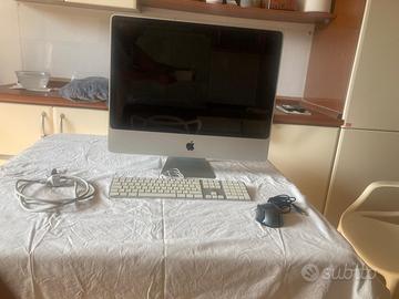 Vendo computer mac fisso 24” con tastiera e mouse come in foto, non ha lettore cd perché nello spazio è stato aggiunto un hard disk a stato solido da 240 giga, 8 giga di RAM, perfetto esteticamente e funzionalmente, la tastiera ha l’angolo in basso a sinistra ammaccato ma funziona perfettamente.