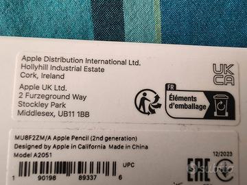 Apple pencil 2a generazione acquistata il 2 dicembre 2025 (garanzia Italia 2 anni) Vendo per incompatilita' con mio Ipad Confezione perfetta senza cellophane