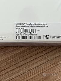 Apple Pencil seconda generazione nuova con scatola originale. Aperta solo per fare le foto, la vendo per incompatibilità con il mio tablet.