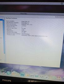 Apple Power Mac G5 modello A1047 (EMC 1969), venduto come non funzionante, ideale per collezionisti o per ricambi. ✅ Si accende e fa il classico suono di avvio ❌ Rimane bloccato sulla schermata con punto interrogativo lampeggiante Scambio a mano a Torino ❌ Disco rigido interno da 76 GB non rilevato ❌ Lettore CD/DVD difettoso, non legge i supporti 📌 Specifiche tecniche: CPU PowerPC G5 1.8 GHz 3 GB RAM HDD 76 GB (non funzionante) macOS 10.5.8 installato prima del problema Numero di serie (sistema): CK3371RTQ6Z In allegato foto prima e dopo il problema di accensione 🧊 Esteticamente buono, con lievi segni d’uso