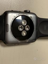 Vendo Apple Watch Serie 2 originale con cassa in alluminio grigio siderale da 42 mm (modello 17U208), acquistato nuovo nel 2017, 4.7 giga di capienza, con cinturino originale nero. Diversi segni del tempo, piccoli strisci e graffi (vedi foto), ma tutto sommato in buone condizioni. Perfettamente funzionante in tutti i minimi dettagli. Già inizializzato e pronto all’uso da parte del nuovo proprietario. Incluso caricabatterie originale USB.