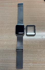 Apple Watch regalato a Luglio 2022, ancora in garanzia. Vendo per ulteriore regalo. Utilizzato ma come nuovo, non presenta segni di usura poiché protetto sempre con cover. Compreso di scatola e accessori originali , cinturino originale Apple bianco nuovo mai indossato. Aggiungo inoltre 2 cover nuove, cinturino in maglia milanese in acciaio (non originale) e cinturino bracciale con catene in acciaio (non originale). Per ulteriori informazioni o foto contattatemi.