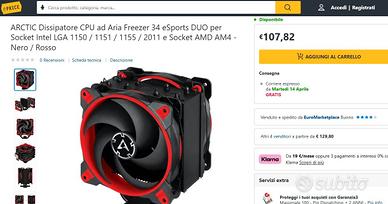 Vendo dissipatore ad alte prestazioni e silent, adatto al montaggio solo ed esclusivamente su socket AMD AM4 e AM5, non è adatto al montaggio con altri socket. Mantiene temperatura molto basse e bassissima rumorosità, quasi inudibile, grazie alle due ventole molto generosi. Testato sia con Ryzen 7 5700x 5700G 5800x e 5800x3d su socket AM4 e con Ryzen 5 7600 Ryzen 7 7700 e Ryzen 7 7800x3d su socket AM5. Per il montaggio su altri socket è necessario acquistare a parte il retention kit. Lo consiglio sui socket AMD per cui è stato originariamente realizzato dal produttore Arctic. Non possiede pasta termica a corredo, necessaria applicarla prima del montaggio. Per informazioni chiedete pure. Prezzo di vendita al pubblico circa € 79,00 la versione solo per Socket AM4/5 mentre su ePrice potete trovare la versione multi socket a € 107 circa. Possiede documento d'acquisto recentissimo, lo vendo solo perchè ne ho acquistati 2 ed uno è superfluo. Testato per garantirne il perfetto funzionamento. Non ha polvere sopra.