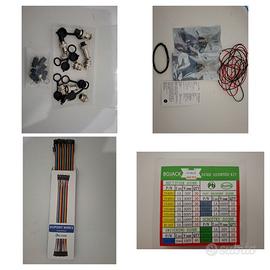 Arduino Mega 2560 REV3 [A000067] Breadboard / basetta sperimentale senza saldatura (Elegoo, “Solderless Breadboard”) Moduli relè 1 canale 5V (Songle SRD-5VDC-SL-C, “1 Relay Module”, trigger high/low) Display LCD 20x4 (formato 2004 / “R200”, tipo HD44780 compatibile) Pulsanti / switch momentanei tipo arcade (tactile, 4 pin) con cappucci colorati Modulo sensore “Line Follower” GTIWUNG 480 Pezzi JST Connettore Kit con 2,54mm JST-XH 2/3/4/5/6 Pin Maschio + Femmina Connettore per Cavo Adattatore presa set per Servo RC Aerei ELEGOO Kit Resistenze Resistori Assortiti 17 Valori 1/4W 1% Tolleranza 525 Pezzi, Set di Resistenza a Film Metallico da 0 Ohm a 1M Ohm per Arduino Elegoo “37 Sensor Kit v2.0” 18AWG 0.8mm PVC Elettrico Filo 7 colori kit Cavo Elettrico Solido Rame stagnato ad alta purezza senza ossigeno accessori/componenti vari (in organizer) Connettori circolari tipo “aviation” RUNCCI-YUN 6Pcs Connettore aviazione 4 pin Maschio Femmina Plug Metallo GX12 Modulo Wi-Fi ESP8266 ESP-01S (AZ-Delivery) Cavi Dupont / jumper wires (Elegoo, rainbow) ELEGOO 120pcs Kit Cavetti Jumper Filo Dupont Multicolore Wire 24AWG Cavi 40 Maschio a Maschio, 40 Femmina a Femmina per Arduino Raspberry Pi BOJACK Assortimento di diodi, 14 valori, 240 pezzi, contiene raddrizzatore, recupero rapido Set cavetti rigidi preformati per breadboard (jumper wire kit, assortiti per lunghezza/colore, in scatolina) ELEGOO 4 Channel DC 5V Modulo Relay con Accoppiatore Ottico per UNO R3 Mega 1280 DSP Arm PIC AVR Raspberry Pi SunFounder Breadboard Kit RAB Holder, 830 Points Solderless Circuit Breadboard Basette millefori / protoboard) piccole Basetta millefori / protoboard grande Shield / breakout “screw terminal” per Arduino Mega (morsettiera a vite + area millefori centrale) Scatola assortita con LED 5mm, Pulsantini tattili, Trimmer/potenziometri, Pulsanti switch Cavi Dupont / assortiti