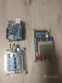 vendo Arduino uno con espansione hanrun, Arduino uno R2 con espansione relè e wi-fi con box, Arduino mega 2560 espansione ethernet R3 + mini gateway wi-fi più display e keypad 16 tasti