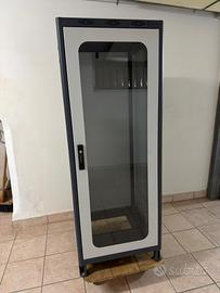 Armadio rack marca TCK-LAN da 19 pollici utilizzato per alloggiare apparecchiature informatiche, server e dispositivi di rete. Pannelli laterali removibili e predisposizione per ventole di aereazione nella parte superiore. Chiusura con chiavi e rialzato dal pavimento per maggior arieggiatura. In condizioni ottime ( solo qualche graffietto negli angoli) e usato solo per 2 anni. Dimensioni esterne: Profondità 60 cm Altezza 160 cm Larghezza 60 cm Dimensioni interne: Altezza 140 cm Larghezza 55 cm Lunghezza 50 cm Vendo per inutilizzo a causa di chiusura definitiva dell'attività.