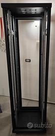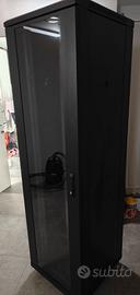 Vendo per cambio progetto armadio rack nero 42 unità 600x600 per h 2000 attualmente montato su ruote ma disponibile e compreso nella vendita zoccolo per montaggio fisso a terra mai montato.