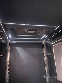 Armadio Rack dim 97,5x80 h.185 porta anteriore in vetro, la parte sinistra rimane aperta, non ha il pannello di chiusura. con ventole di raffreddamento Vendo per trasloco. Praticamente nuovo