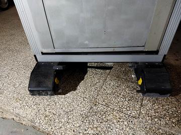 Vendo armadi rack usati; il primo ha 4 ruote piroettanti, 2 pedali di sblocco ruote; largh.65cm, prof. 60cm, altezza 185cm, tutte le pareti cieche, finestre quadrate per applicazione ventole e bocchette di sfogo aria sul coperchio, prezzo € 70