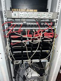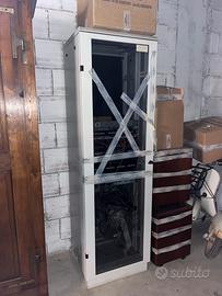 Armadio rack con alcuni componenti all’interno, 62x62 alto 210 cm