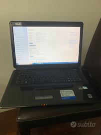 Asis modello k17IO Schermo da 17.3 Pentium dual core 2 ghz Ram 2 gb Batteria che non tiene la carica e sportellino batteria che non si fissa slla scocca Alimentatore a muro Versione Windows 10 in prova