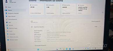 Acer con processore i7 di ottava generazione 8gb di RAM ssd da 256 GB tastiera retroilluminata batteria lunga durata originale caricabatteria originale