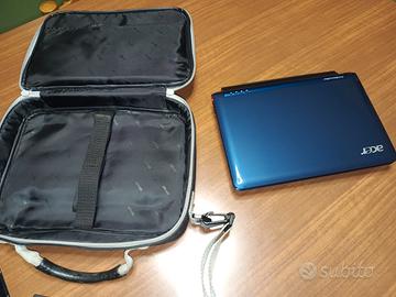 Aspire One A150B BATTERIA MAGGIORATA 5.200mAh RAM 1.5 Gb Borsa TRUST con tracolla Processore Intel Atom N270 (1.60 GHz, 533 MHz FSB, 512 kB L2 cache) 512 MB di RAM (DDR2 533 MHz SDRAM) 160 GB HDD 2,5" unità disco tradizionale Schermo 8.9" (TFT LCD, risoluzione 1024 x 600 pixel - 262 000 colori supportati) Webcam integrata Acer Crystal Eye, 0.3 megapixel WLAN: Acer InviLink 802.11b/g Wi-Fi LAN: 10/100 Mbit/s Fast Ethernet Scheda per connettività su reti cellulari 3G/HSUPA. Bluetooth: opzionale