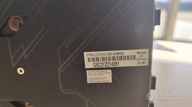 Come da titolo vendo una scheda video ASUS STRIX 1070 con scattola e accessori.Lo vendo in quanto sono passato a una scheda superiore. Fino poco tempo fa, questa scheda era ancora installata nel mio PC fisso e ha lavorato senza alcun problema, per intenderci ho giocato Battlefield 6 con i dettagli ridotti, però ha funzionato perfettamente.