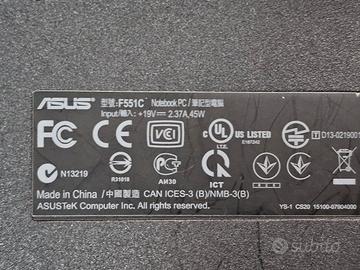 Vendo Notebook Asus 551C guasto, scheda madre rotta non si accende, ottimo per recuperare i componenti se avete un pc simile, mancano Ram e Hard disk.