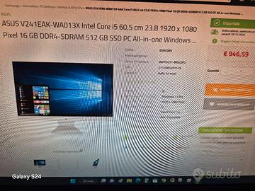 svendo per mancato utilizzo, ancora confezionato e mai sballato, potente ed elegante computer all in one della asus modello v241eak-wa013x adatto per coloro che amano pochi fili infatti tastiera e mouse sono wireless. Caratteristiche ed altre info non esitate a contattarmi. prezzo trattabile e spedizione disponibile.