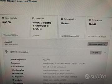 Asus all in one AIO i5 8gb 240gb ssd perfettamente funzionante