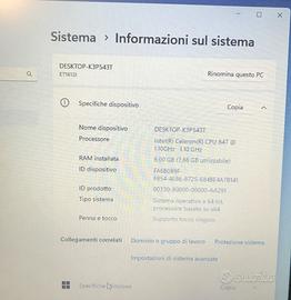 Grafica:Intel HD Graphics, Memoria: 128MB preallocati + RAM condivisa.